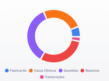 Conteúdos transformados em flashcards, questões, casos e resumos